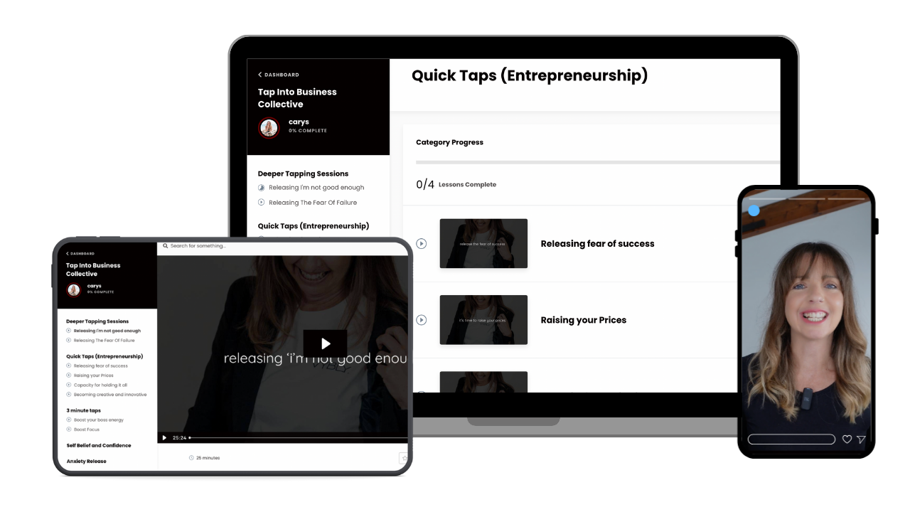 Join the Tap Into Business Collective and unlock your self-belief, clarity, and creative power with EFT tapping, coaching, and accountability ā all designed for ambitious business owners.